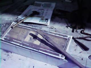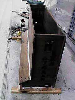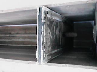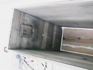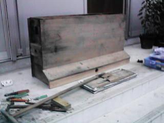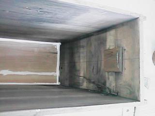 内部の底板部分に万全を期すため シリコン処理をして 空気の漏れを防ぎます。 右の画像も同様ですが、 上部の張り付けてあるように見える板は 空気取り入れの弁の作用をしています。 弁板の下にある丸い穴は取っ手を 差し込む穴です。 |