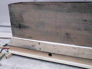 左の画像は杉板で底板を 取り付けたところです。 右の画像の下部分に丸い穴があります。 この穴から取っ手を押したり 引いたりする度に空気が出るわけです。 |