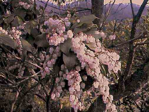 ピンク色のアセビの花が今、満開。 山にあるアセビは、ふつう白い花を付けるのだが、 私の家の庭の花はピンク色。 |