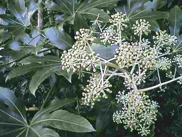 | 暖かな春を感じながら、神社の石段を登ってみた。 大きな杉の木の下にヤツデの木があることは知っていた。 しかし、実を付けていようとは知らなかった。 ヤツデの花が終わり、実を付けていた。 |